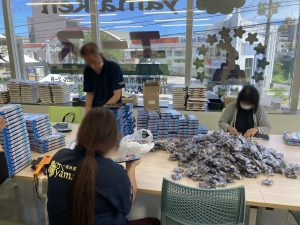 事業所近くの企業での施設外就労 ちんすこうの生地作り:ミキシング・生地の成形・オーブンに流す・出来上がり商品の袋詰め・ラベル貼り・納品までの一連の作業をすべて行います。 お土産品店への納品はスタッフ同行にて対応 |