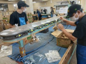 ハートフルユニオンナカマでは、フレッシュプラザユニオンさんと連携し、店舗に並ぶ農産品の袋詰め、カットフルーツの製造、果物の洗浄作業、行事に使用する商品の袋詰めなどを行っており、私たちが手掛けたお野菜や果物はユニオン全店舗の店頭に並び、多くのお客様のもとへ商品として届けられます。