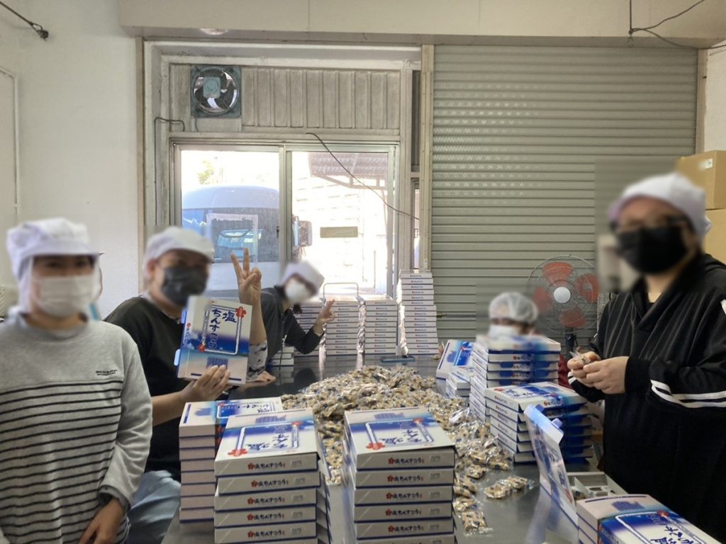ちんすこうの生地作り:ミキシング・生地の成形・オーブンに流す・出来上がり商品の袋詰め・ラベル貼り・納品までの一連の作業をすべて行います。