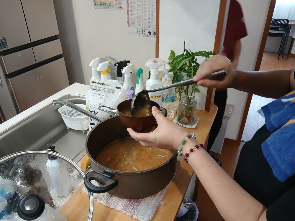 | 作業内容 | 【B型】 調理補助として、汁物(おつゆ)や和え物など、簡単な調理の調理補助や洗い物などを行います。 ※自立支援の一環として本人の希望を重視して対応いただきます。 |